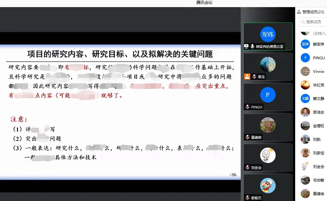 召开了国家自然科学基金项目申报辅导线上会议,本次会议特邀韩军伟教授,我院拟申报2022年基金项目的教师参加了本次会议,会议由我院科研副院长慕德俊主持。