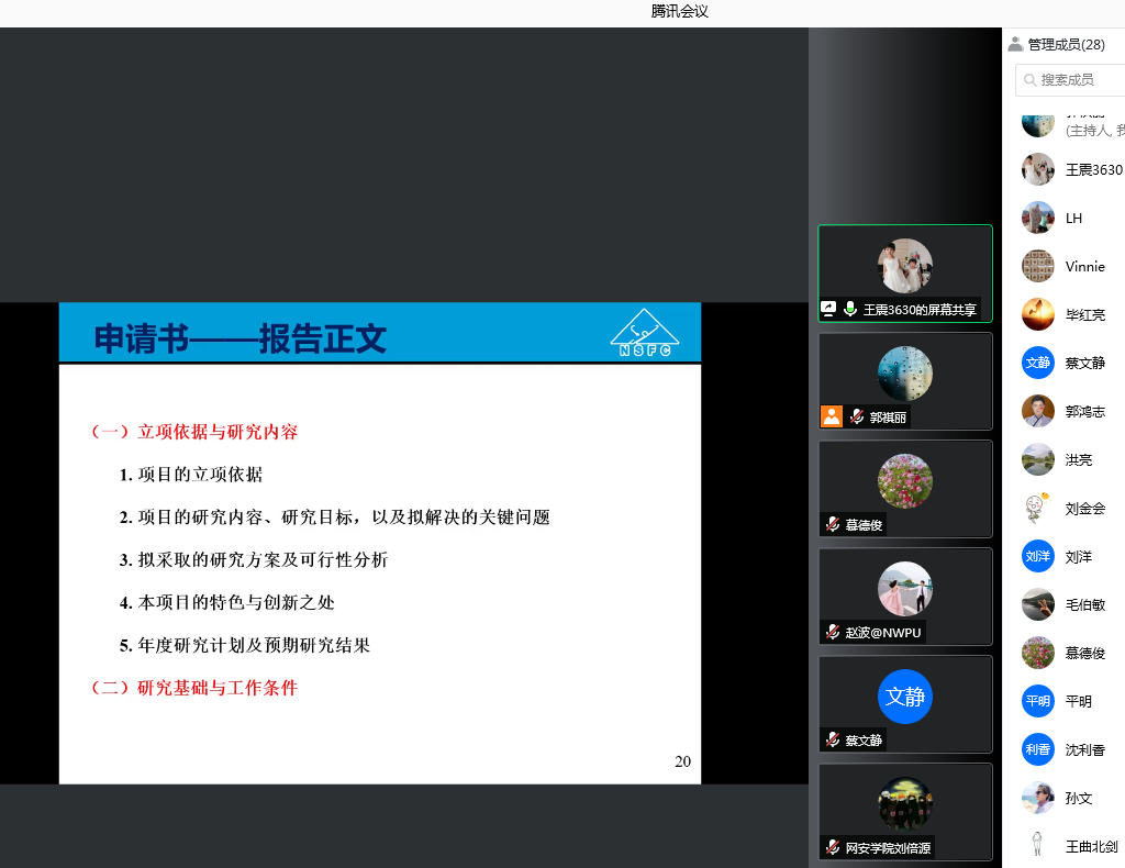 召开了线上会议,由王震书记为教师进行国家自然科学基金项目申报辅导。我院拟申报2022年基金项目的教师参加了本次会议,会议由我院科研副院长慕德俊主持。