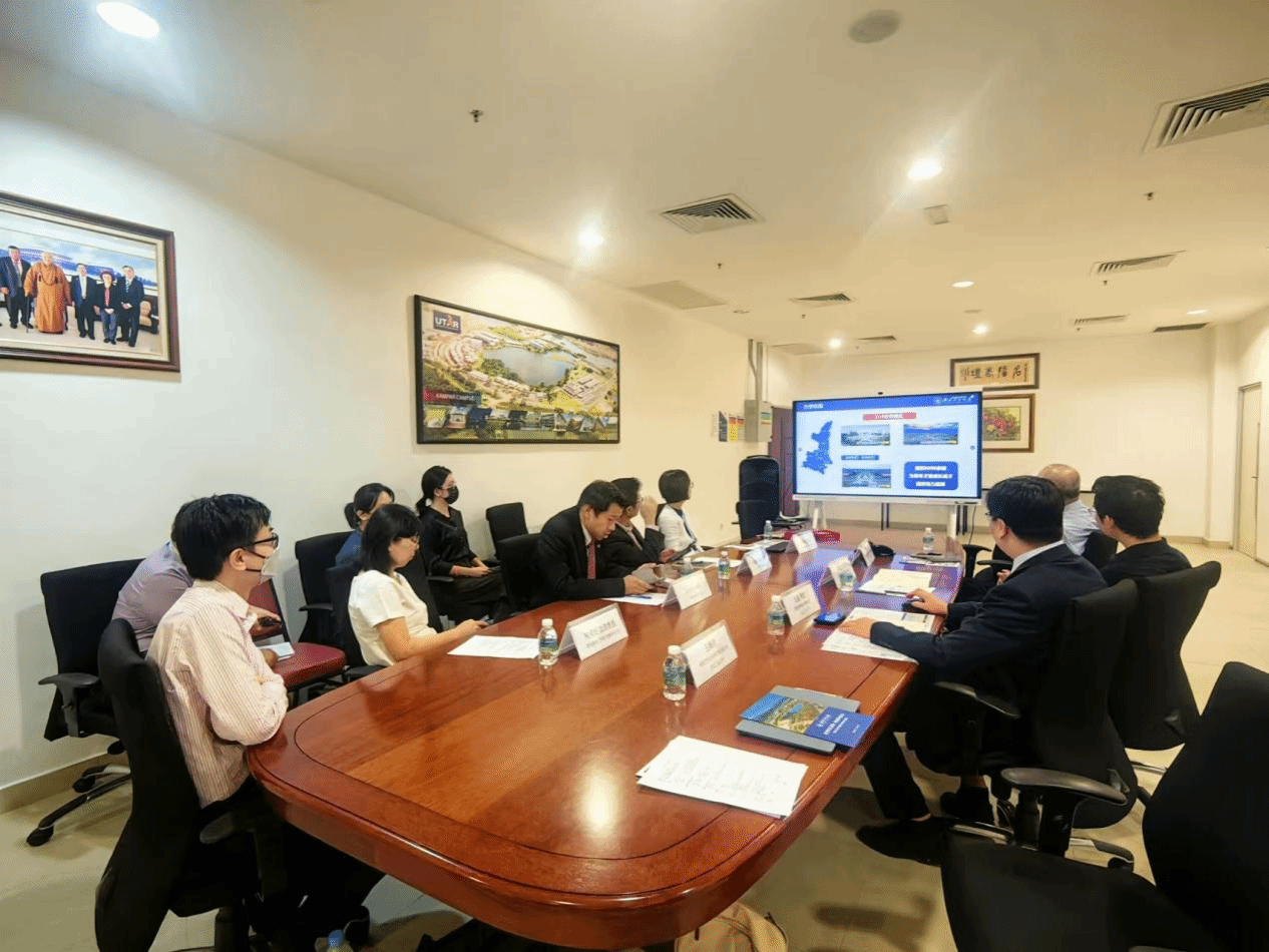11月19日,代表团访问了拉曼大学,与该校国际处处长赖顺安、理工学院院长叶文诗、计算机系主任何美好等就学生交流和科研合作等事宜进行了深入交流,该校信息通信学院院长刘绍瑜、副院长吴福源等教授也以线上形式参加了交流。赖顺安处长对代表团来访表示热烈欢迎,随后理工学院和信息通信学院负责人介绍了两个学院发展和人才培养相关情况。王震院长介绍了泰国av