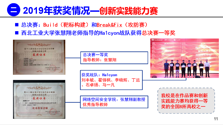 是2019年作品赛和创新实践能力赛均获得一等奖的全国8所高校之一。