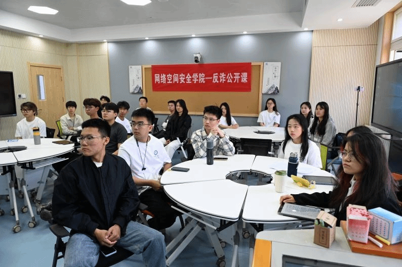 院长王震教授与学院反诈宣传队结合AI技术剖析网络和电信诈骗新态势,采取线上线下相结合方式,在长安校区给学生讲授网络信息内容与认知安全公开课。