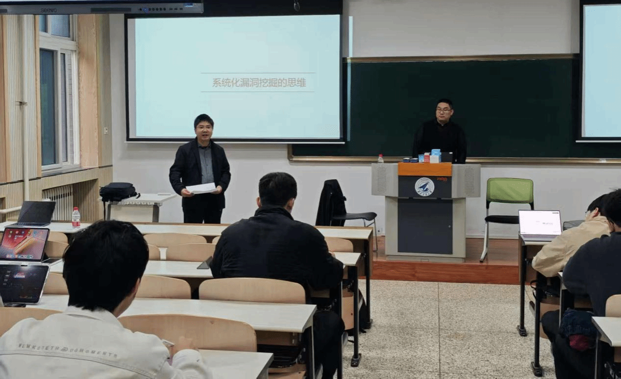 漏洞挖掘不仅是发现未知威胁的前沿阵地,更是培养网安人才实战能力与攻防思维的核心环节。本次培训聚焦网络安全领域的实战需求与发展趋势,旨在拓宽师生的技术视野,提升对新型威胁的认知与应对能力,以及发掘网络应用安全脆弱性的能力。三位专家分别从不同维度分享了他们的研究成果与实践经验,王晓帅以“系统化漏洞挖掘的思维模型”为题,深入剖析了在复杂系统中高效、持续发现安全漏洞的方法论与思维框架。杨涛系统介绍了“AI驱动下的代码审计新思路”,重点讲解了如何利用AI辅助识别代码中的潜在风险与隐蔽漏洞。张启超结合多年红队攻防经验,从实战角度出发,深入浅出地讲解了“红队视角下的防御体系瓦解与进化”,并进一步探讨了防御方应如何基于攻击视角持续进化防护策略。
