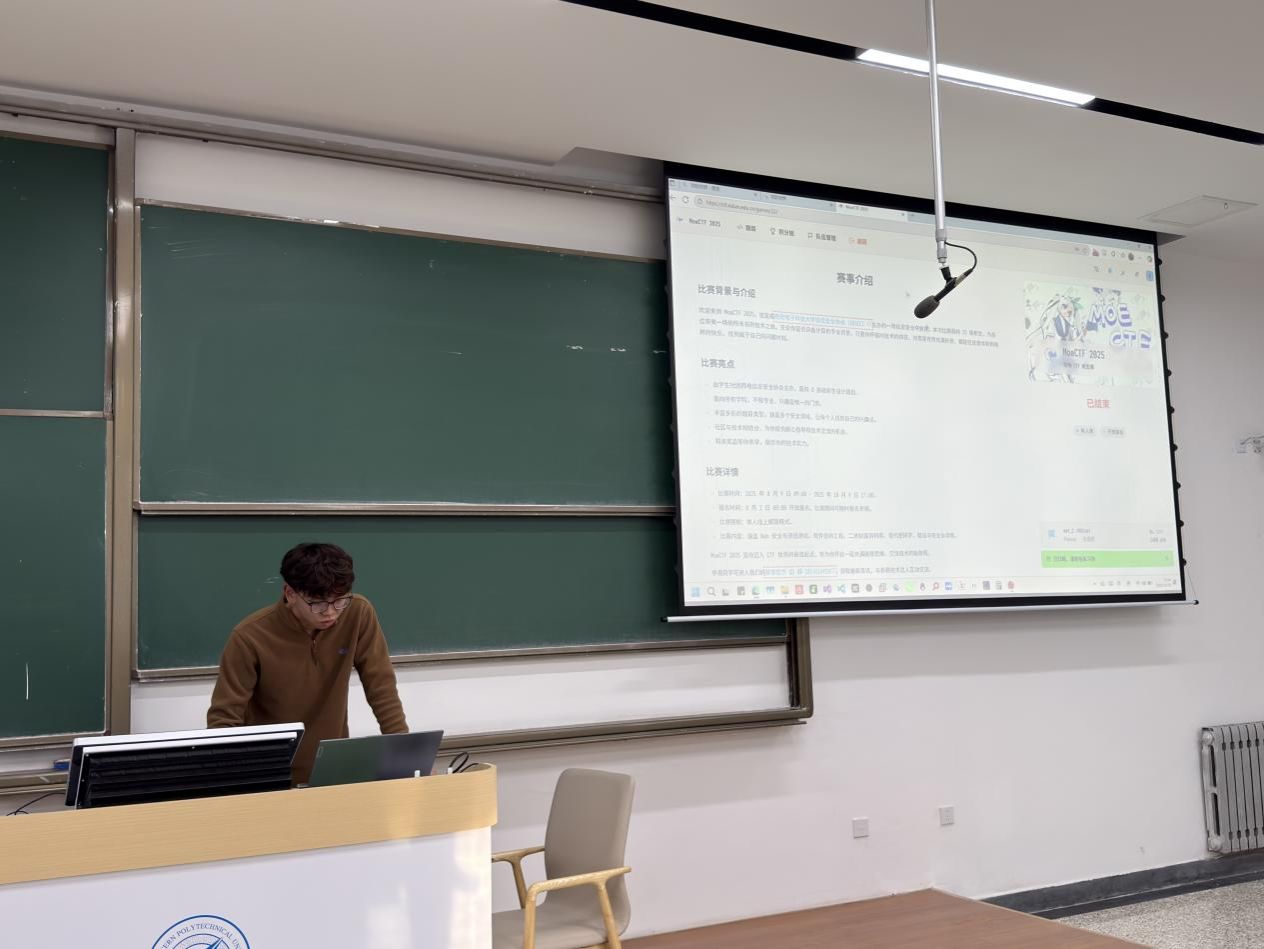 针对同学们广泛关注的CTF竞赛,经验丰富的李玮峰同学为大家带来了一场生动的入门导览。他首先阐述了学习CTF的重要意义,不仅是提升技术实力的捷径,更是迈向网安实战的关键一步。随后,他系统介绍了CTF的主要竞赛方向,并贴心地分享了相关网站资源。李玮峰特别鼓励大家参加CTF公开课,并希望大家能够“保持热爱,不要放弃”。最后,他用自己的真实经历介绍了从平台演练到“护网行动”的进阶之路,激起了在场同学对CTF赛事的憧憬。