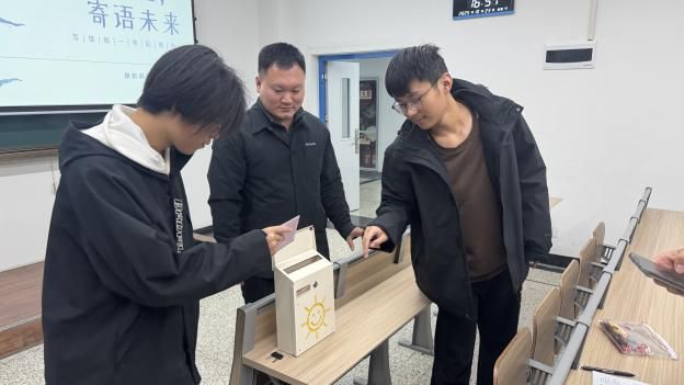 信件书写完毕后,同学们郑重地将信纸装入信封,依次投入专属信箱。班主任徐博文全程见证并封存信箱,为这场“时光之约”画上庄重而温暖的句点。