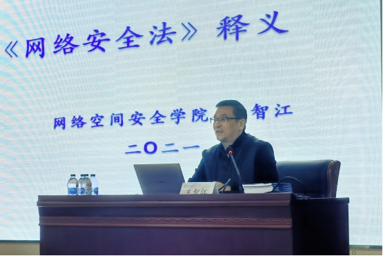 “双创”人才培养基地负责人王智江讲授网络安全国家战略之-《网络安全法》释义,为大家普及相关法律法规。