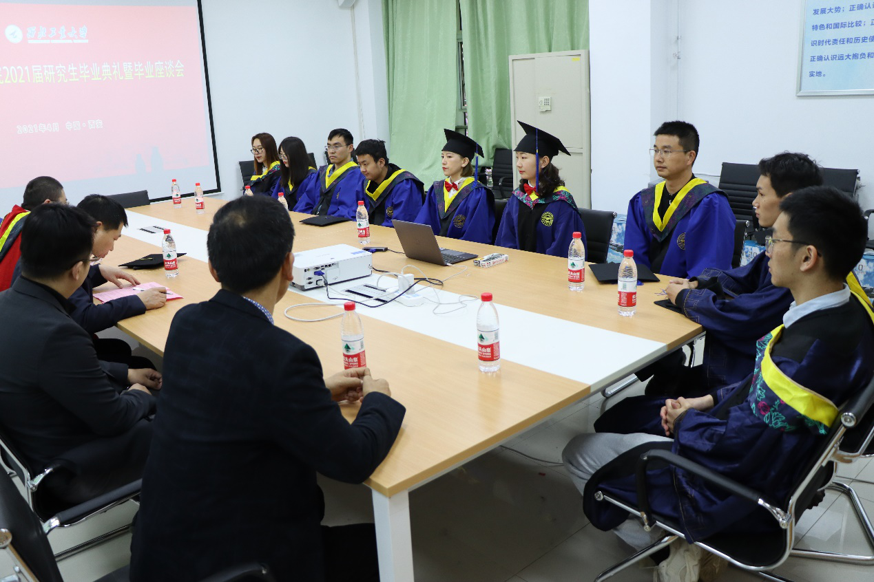 在翱翔学生中心西配楼举行了2021届研究生学位授予仪式暨师生座谈会。常务副院长张盛兵、副院长刘志强、副院长(挂职)郑玉山、研究生导师杨涛及11名毕业生参加了会议。会议由学院党总支书记王高祖主持。