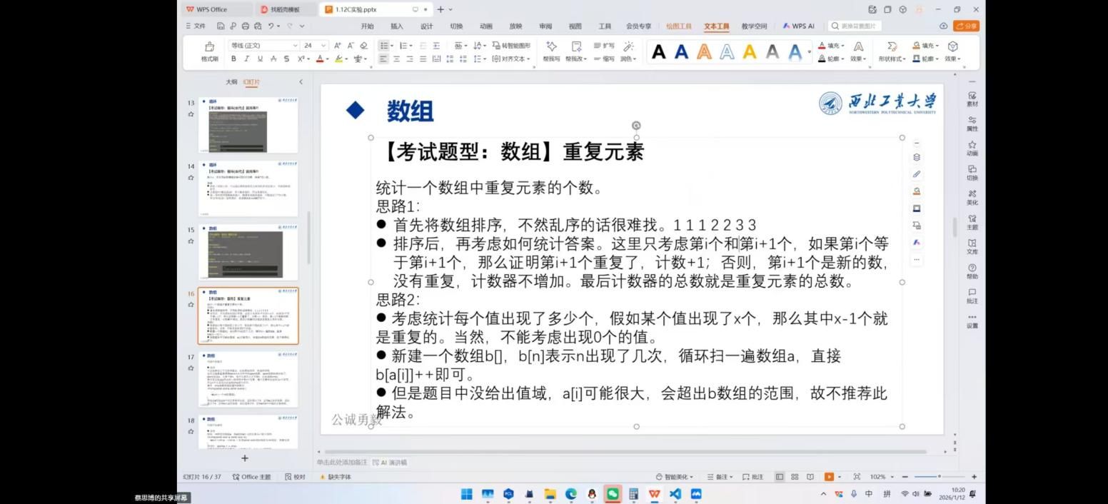 1月12日早9点,“程序设计基础篇”直播间率先开讲。蔡思博从程序设计基础日常练习题NOJ入手,精选典型题目展开解析。他引导同学们先分析题干,找出要设计的程序所面向的核心问题,再据此进行思路设计,并通过一题多解拓展思路。讲解中,蔡思博还特别提醒同学们注意程序优化与细节处理,避免常见错误,并分享实用技巧,帮助大家提升解题效率。