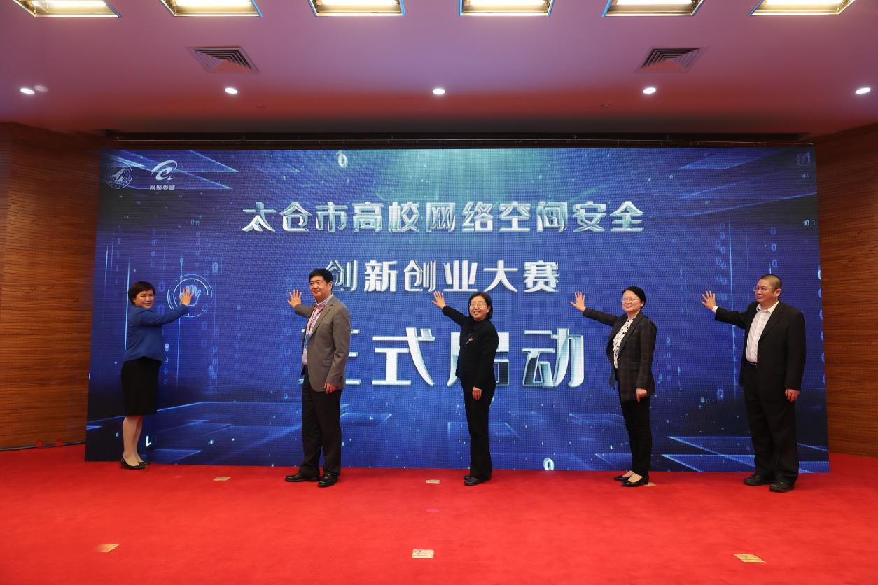 领导、苏州市和太仓市网信办领导共同按下太仓市创新创业大赛的启动按钮,本次大赛本着“以赛促教、以赛促学、以赛促创、赛教一体”的原则,培养学生的创新意识与团队合作精神,增强学生创新创业意识,以赛场做为试炼场,夯实本领,担起重任,为网络安全产业发展作出积极贡献。