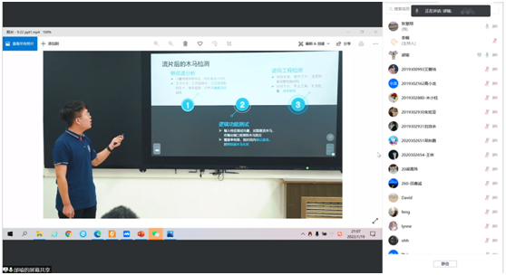 实验教学中心的邰瑜老师详细讲解了全国大学生信息安全竞赛的发展历史、参赛方式、时间安排等事项,随后与学生们共享了历届获奖项目的现场答辩视频,使学生对该竞赛有了更深入的了解。
