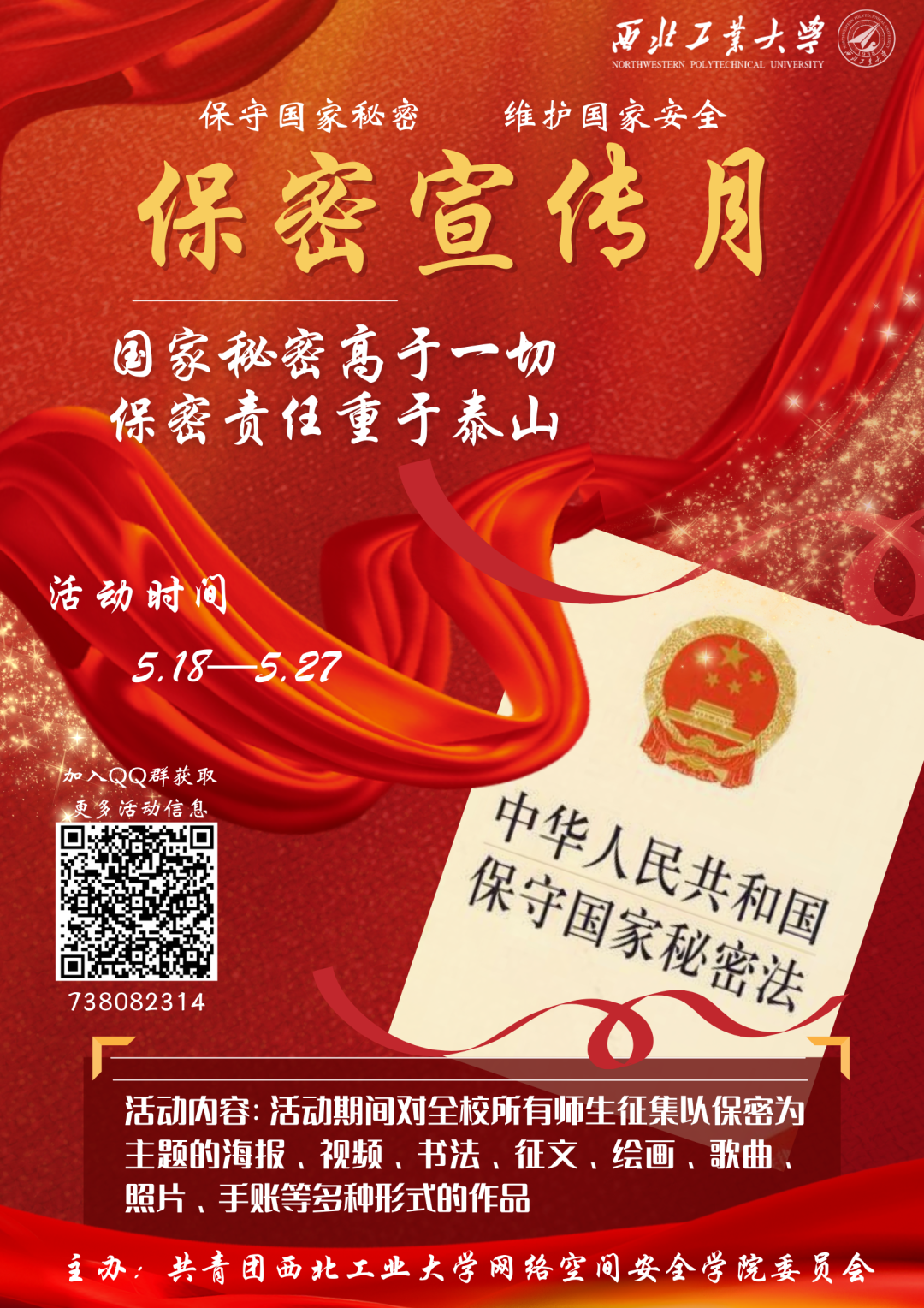 举行了参观学习、实地研学、主题讲座、青春讲堂、文艺作品征集等一系列保密主题活动。引导全校学子学习保密相关法律法规,强化保密意识,铸牢维护国家安全的精神防线。
