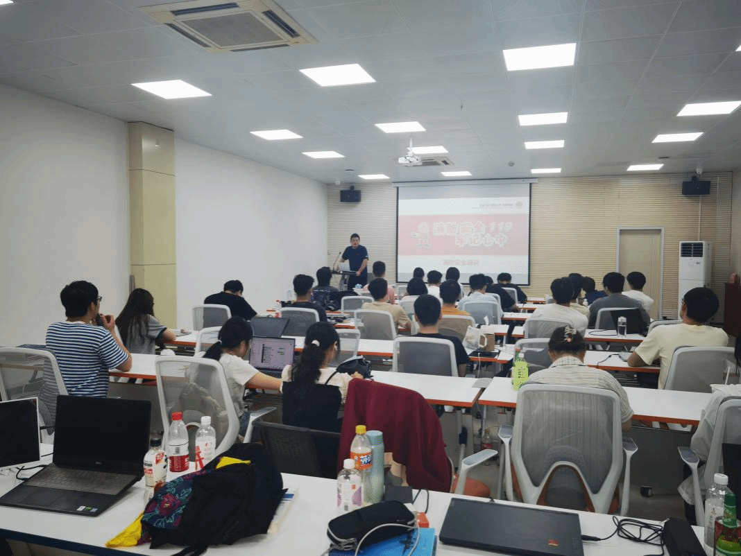 C101-1由学校保卫处消防科许磊老师为我院师生开展安全培训学习讲座。许磊老师结合校园真实火灾案例,从燃烧与火灾、消防安全隐患、灭火器使用、火场逃生技巧等多个方面为师生进行了详细讲解。随后师生们观看学习了《2024“安全生产月”主题宣传片》、《安全生产责任在肩》警示教育片以及消防安全科普视频,进一步让安全发展的理念深入人心。