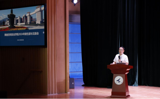 王震围绕学校基本情况、网安学科发展历程、网安学院与学科建设概况向新生家长们做了详细的介绍。