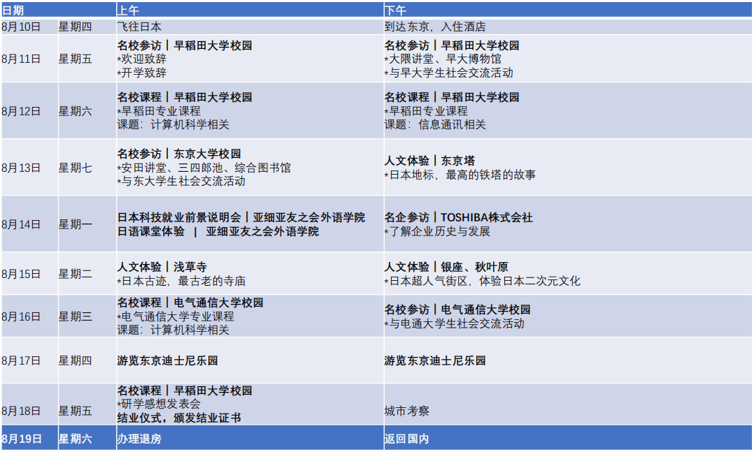 名校计算机通讯等相关课程、名企参访、人文体验;