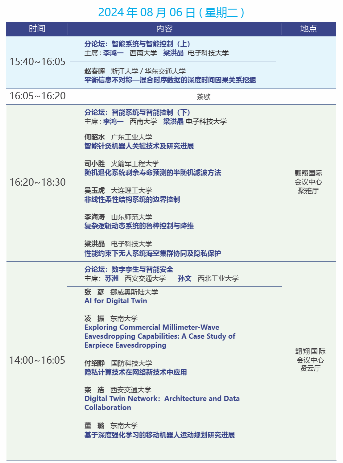 本次会议面向国家重大需求,聚焦人工智能与机器人的基础研究与创新能力,邀请科研院所、高等院校、企事业单位的专家学者,通过高端论坛和学术对话等形式,共同探讨智能传感与智慧医疗、智能系统与智能控制、数字孪生与智能安全、安全控制及其应用等多领域话题,分享最新的研究成果、前沿思维和创新技术,为有关领域的专家、学者及工程技术人员提供一个互相交流、学习和合作的平台。