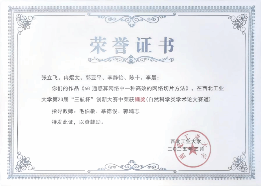 时光匆匆,西工大本科四年让我收获满满,在西工大“总师育人”文化熏陶下,我迅速成长,既追求工程能力的扎实提升,也努力涵养人文素养与人格力量。在这里我结识了良师益友,在我成长的道路上陪伴我、鼓舞我,让我成为一个真正的有能力独当一面的成年人。最后衷心感谢母校与学院的栽培与支持,愿未来的我不负韶华,笃行不怠。更愿母校与学院薪火不息、弦歌不辍,行远自迩,臻于至善。