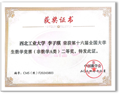 科研竞赛中,她以赛促学、以学促创。曾获中国国际大学生创新大赛国家级银奖、第九届“强网杯”创新创业专项赛全国三等奖、全国大学生数学竞赛省级二等奖;主持国家级大学生创新创业训练计划项目一项,并参与课题研究,相关成果论文已被《电子与信息学报》期刊拟录用。