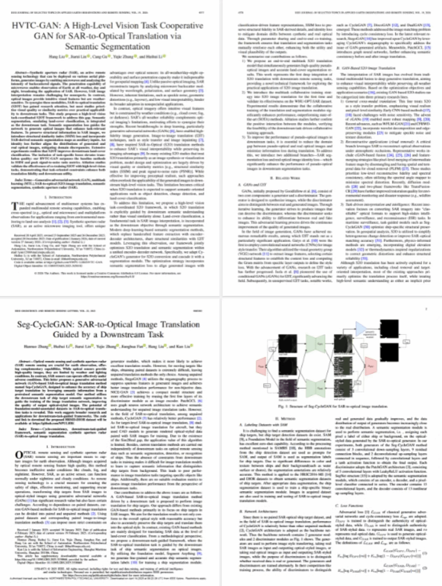 [1] Liu H, Lin J, Gu C, et al. HVTC-GAN: A High-level Vision Task Cooperative GAN for SAR-to-Optical translation via Semantic Segmentation[J]. IEEE Journal of Selected Topics inApplied Earth Observations and Remote Sensing, 2026.