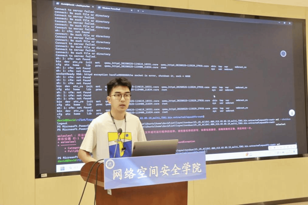 最后,由泰国av 学生信息安全协会会长周子博为同学们进行了生动刺激的路由器攻防演示,形象地展示了网络漏洞的隐秘性、危险性以及网络安全的重要作用。
