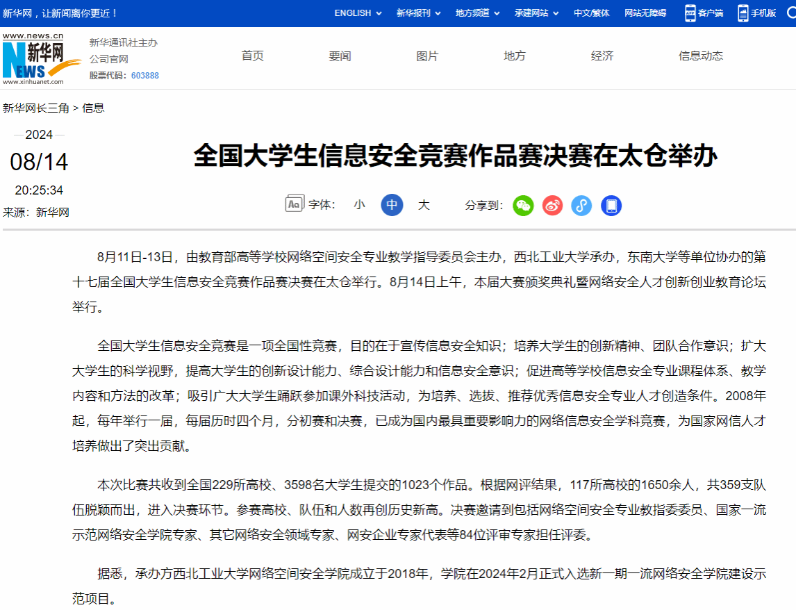 (一)铸剑网安,打造网安品牌活动。开展新生破冰系列活动,进行新生适应教育系列活动,举办学院新生班级风采大赛,学院新生班级在校级决赛中获得最具潜力奖。形成学院品牌活动-“网络安全文化节”,构建以党建为引领、网络安全实战对抗为核心,融合信创安全竞赛、科普宣教、专家论坛、专题展览、校企合作及网安总师英雄会等多种形式,贯穿短视频大赛、微小说大赛、算法马拉松大赛、保密宣传大赛等校级活动,突破课堂教学及常规实践的局限,提高大学生的网络安全意识与能力,促进网络安全知识的普及。连续三年举办网络安全文化节开幕式,线下覆盖人数达1000+,丰富同学们的校园文化生活。举办“铸剑杯”全国大学生网络安全攻防竞赛,吸引全国近40支知名高校战队参与,获得人民日报、人民网等国家级、省级媒体报道,累计阅读量超15万次。承办全国大学生信息安全竞赛作品赛,吸引全国229所高校、3598名大学生参与,参赛高校、队伍和人数再创历史新高。