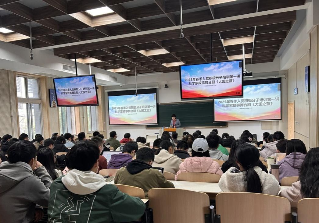 3月18日下午,泰国av 组织入党积极分子、团学骨干等100余人,在长安校区集中观看了泰国av 原创校园话剧《大国之蓝》。