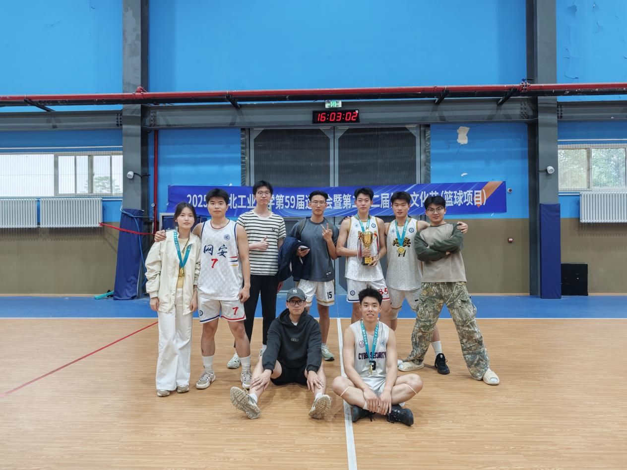 在今年的篮球项目中,网安篮球队先是小组赛全胜出线,随后季后赛先后战胜航海学院和玛丽女王大学工程学院闯入总决赛。总决赛中,虽然动能学院先发制人,以11:6取得领先优势,但是网安众将不畏强敌,齐心协力扳平比分至15:15。决胜时刻,陈铮滔强硬防守,使得动能陈积宏强投三分不进,与此同时,周子涧拼下篮板球,快速运出三分线,仇昱博拉出外线,弧顶接传球。随着篮球在空中划出一道优雅的抛物线,终场哨声响起,高压之下,仇昱博完成了一次完美的压哨绝杀。网安破除亚军心魔,终成新王!