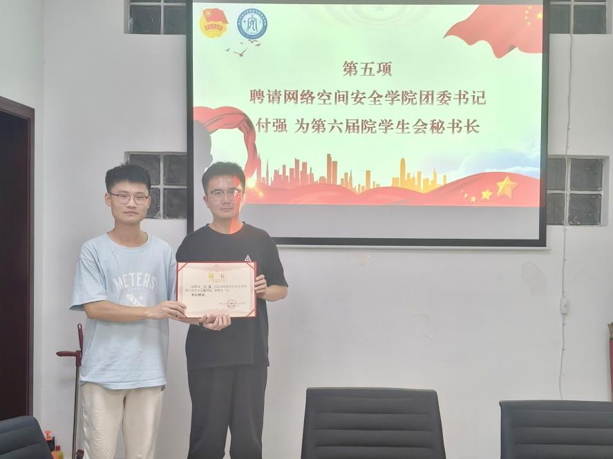 最后,第六届院学生会特聘请付强为第六届院学生会秘书长,全面指导学生会各项工作的统筹与开展。