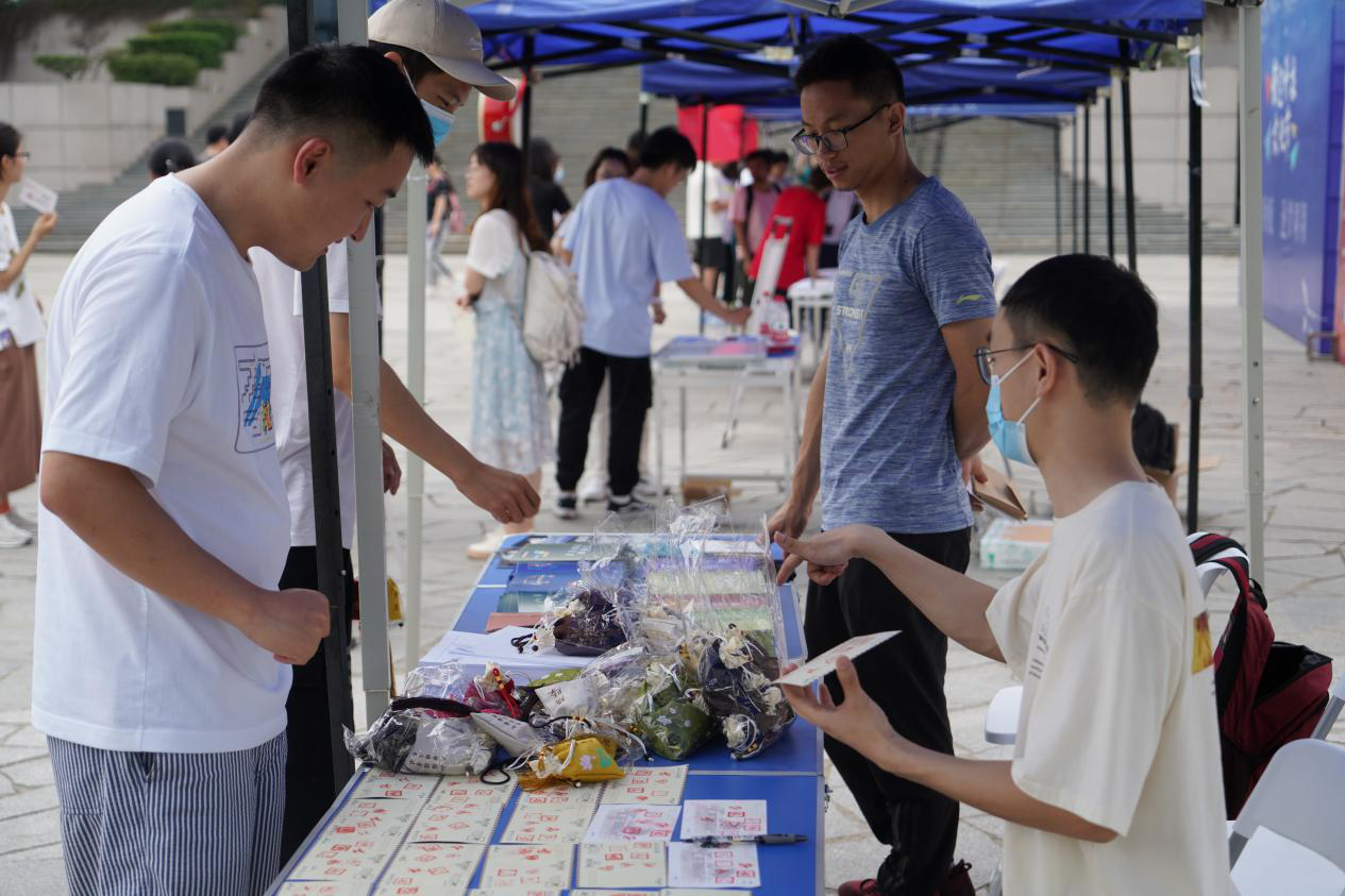 解忧漂流瓶活动中,大家则留下了对于学业、生活等方面的疑惑、问题,希望在同学们中寻找一个答案。大家对漂亮的漂流瓶都十分喜爱,参与活动同学们的漂流瓶变成了一串串风铃悬挂在活动帐篷上,成了翱翔学生中心广场的一道靓丽风景线。
