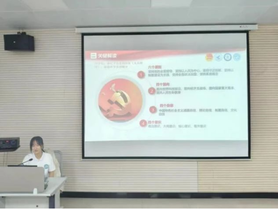 DL062450班于10月13日在学院楼C101室举行主题班会。活动首先以团支书徐心悦对党的二十届三中全会进行概括性介绍展开。随后开展了趣味翻牌小游戏,进一步加深了同学们对党的二十届三中全会关键词的印象,大家在游戏互动环节的乐趣中踊跃学习,积极表达自己对祖国的热爱。