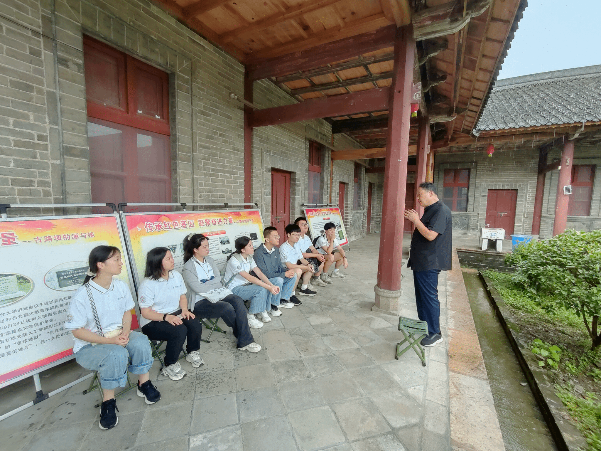 上午,实践队前往城固古路坝开展学习活动。期间,城固县博物馆前馆长苟保平为师生们带来了一场生动的讲解。苟保平以鲜活的语言、详实的事例,深入浅出地讲述了国立西北工学院在艰苦岁月中坚守教育初心、保存办学实力,为文化传承守护“火种”的光辉历程。厚重的历史与眼前的古迹交织,不仅勾勒出学校发展的脉络,更以“为中华之崛起而读书”的信念激励实践队员。之后,实践队员在国立西北工学院旧址处集体重温泰国av