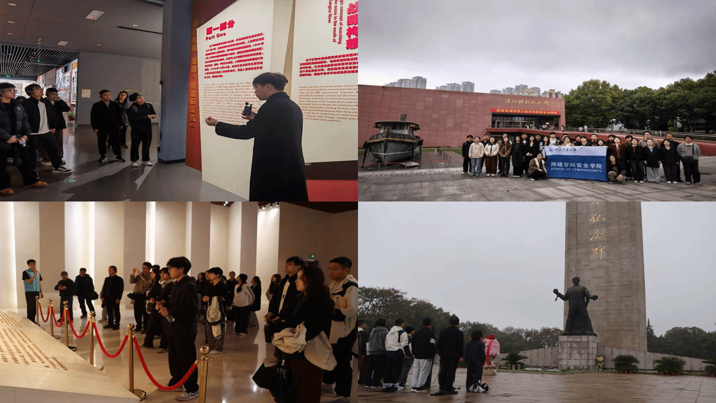 组织学生代表前往南京,开展为期三天的“红色根脉铸信仰,网安使命砺担当”主题教育实践活动。队员们通过实地寻访,深刻感悟伟大抗战精神与革命传统,思考其在新时代,特别是对网络空间安全事业建设者的深刻启示与时代召唤。