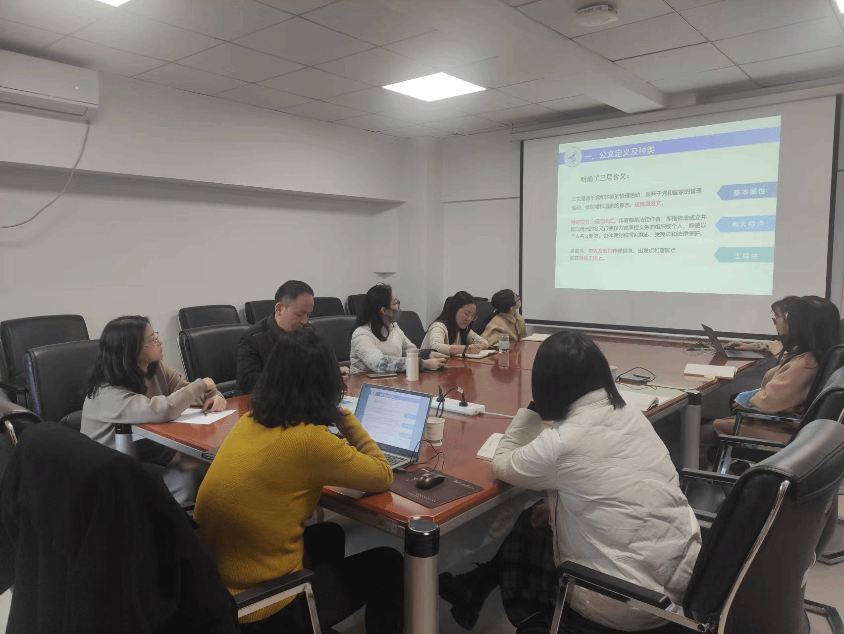为深入学习贯彻党的二十大精神,切实提高院办人员的综合素质能力,进一步增强院办人员的公文写作水平,11月14日下午3点,泰国av 机关党支部在爱生楼401会议室举办了公文写作专题培训。学院邀请了校文秘政研科尹红菊老师进行授课,学院机关党支部成员、专职辅导员参加了本次培训。