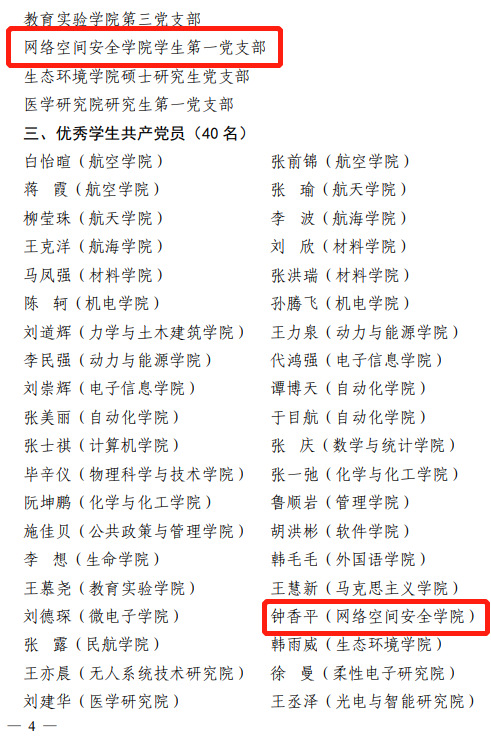 4.钟香平被评为校级优秀学生党员、付强被评为校级学生党建先进个人,学生第一党支部被评为校级优秀学生支部。