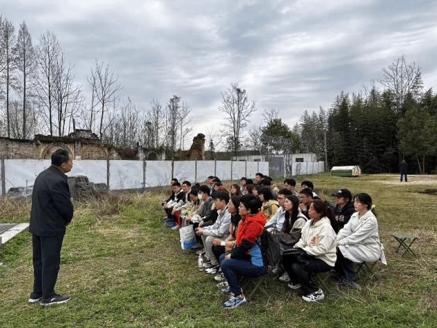 在国立西北工学院旧址旁,党员们认真聆听了城固县博物馆原馆长苟保平老师的现场授课。馆长以其丰富的实践积累和深刻的解读,向党员们再现了抗日战争时期,诞生于民族危亡之际的国立西北联合大学经历了“自合至分”和“辗转迁徙”的发展轨迹,西北联大分至五校之一的国立西北工学院的学子们不畏艰难、刻苦求学的感人事迹。艰苦的办学条件与严谨治学的校风并存,深山幽谷之中学生们勤奋苦读使得古路坝教室的煤油灯火彻夜不灭,师生们用亲身经历实践了教育救国、科技救国的价值理念。正是凭借着这样的精神与情怀,古路坝先后走出了“中国航天材料之父”师昌绪、清华大学原校长高景德等十余位两院院士。“古路坝灯火”激励着后人追忆教授们教育救国的理念,激励学子们以学报国的情怀。