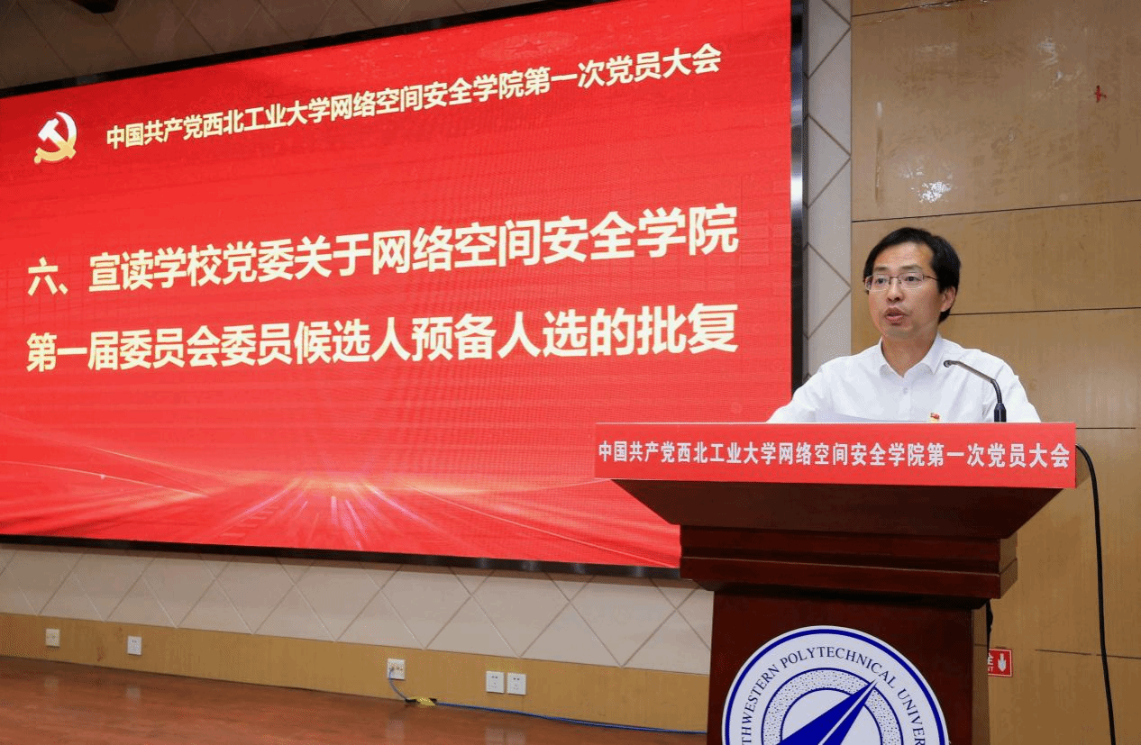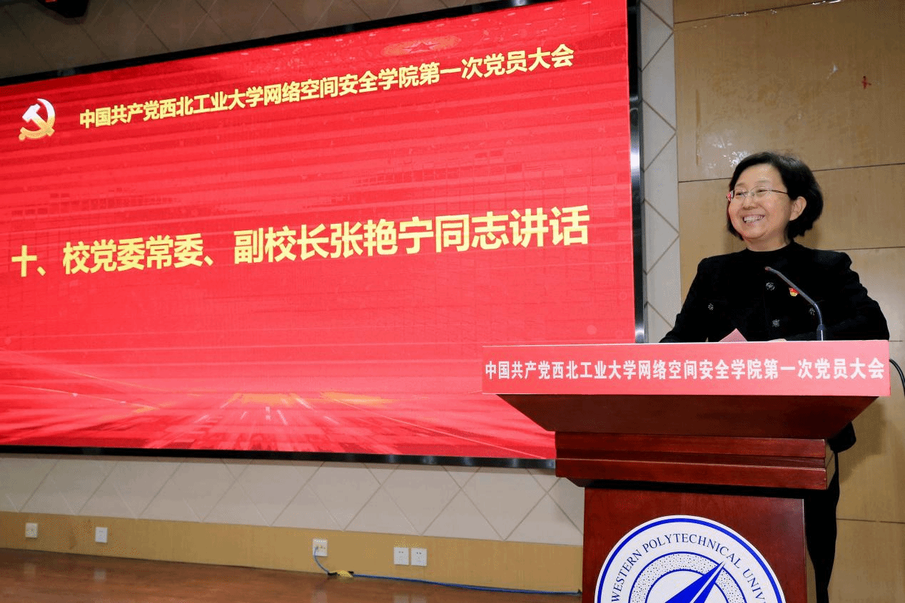 张艳宁同志代表学校党委向大会的成功举行、向当选的党委委员表示热烈的祝贺。她对过去五年多网安学院党政领导班子统筹谋划、干字当头、勇于吃苦、敢于攻坚的工作作风以及学院取得的成绩给予了充分肯定,对学院获批国家一流网络安全学院建设示范项目表示衷心祝贺,并对学院党委提出了三点希望:一是要加强党的全面领导,坚持正确政治方向;二是要落实立德树人根本任务,推动学院高质量发展;三是要抢抓新时代带来的新机遇,担当作为做贡献。