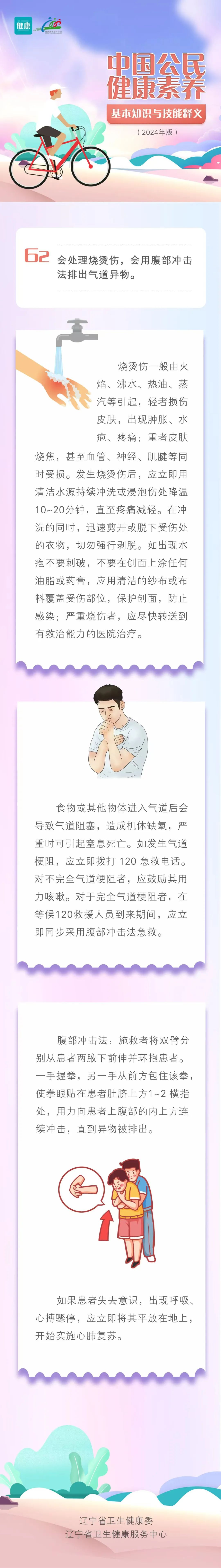 新版健康素养66条|会处理烧烫伤,会用腹部冲击法排出气道异物