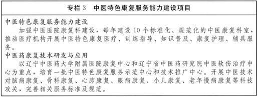 (三)支持发展中医特色康复服务。构建以三级甲等中医医疗机构为区域中心,以县级中医医疗机构为服务枢纽,以社区卫生服务中心、乡镇卫生院为服务网底,以残疾人康复中心、工伤康复中心、民政康复机构、特殊教育学校等机构为补充的中医药康复保健服务网络;支持社会力量举办中医康复机构。建设2个省级综合中医康复中心,4个省级中医专科康复中心和多个区域性中医康复中心。积极推进中医特色康复服务与养老、旅游、教育、药品器械、信息工程等产业的融合发展。(省卫生计生委牵头,省发展改革委、省民政厅、省财政厅、省人力资源社会保障厅、省物价局配合)