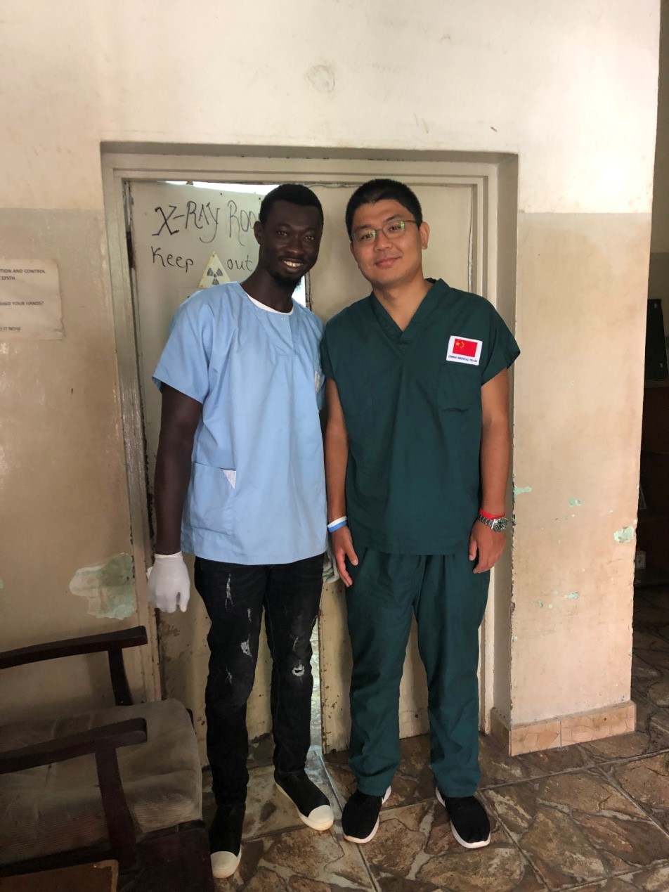 为了便于工作,我主动向在影像科室工作的本地人学习简单的沃洛夫语会话。例如:你好!Nakangadef!你哪里不舒服?Lou laa jot?等等。学习民族语言让我在日常工作受益颇多,极大地帮助了医疗工作。不但拉近了与病人间距离,而且增强了同事间的友谊。我们在这里不仅仅是填补了医疗工作上人力的短缺,更是加深了两种文化的交流,将中国改革开放的伟大成就更好的介绍给非洲人民,成为了真正的“身着白衣的外交官”。当然,工作期间不时冒出的东北话,也被影像科同事们所学习。现在,他们会说的汉语早已经不限于“你好”了。也许有一天,东北话会变成EFSTH的工作语言。
